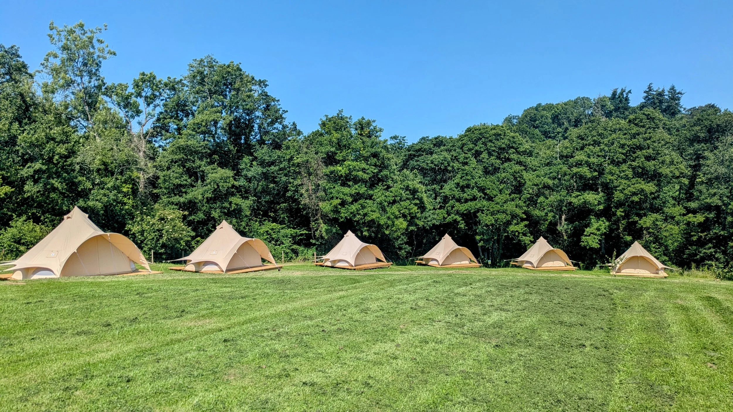 Recommended accommodation option - Meadowfields, Dartington - With cosy heated wooden pods or beautiful bell tents with wood burners, plus heated showers and a communal barn - Meadowfields is the perfect base!